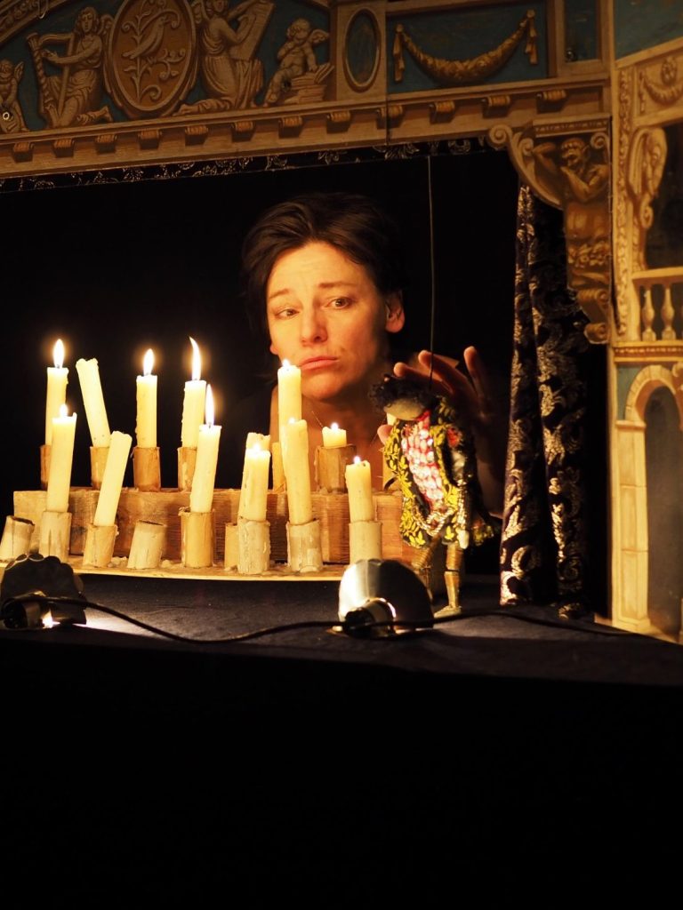 In diesem Stück verwandelt sich eine große Oper auf einer kleinen Bühne: die Figuren sind Puppen, die Kulissen gemalt, und ich selbst singe alle Stimmen – vom Bass bis zum Sopran – a cappella.